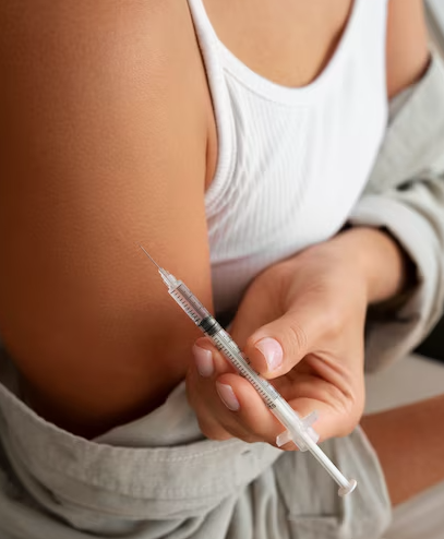 Si utiliza una aguja de 5mm no necesita hacer este pellizco, aun cuando se inyecte a un ángulo de 90 grados, con estas agujas tan pequeñas no debe preocuparse por inyectar el músculo.